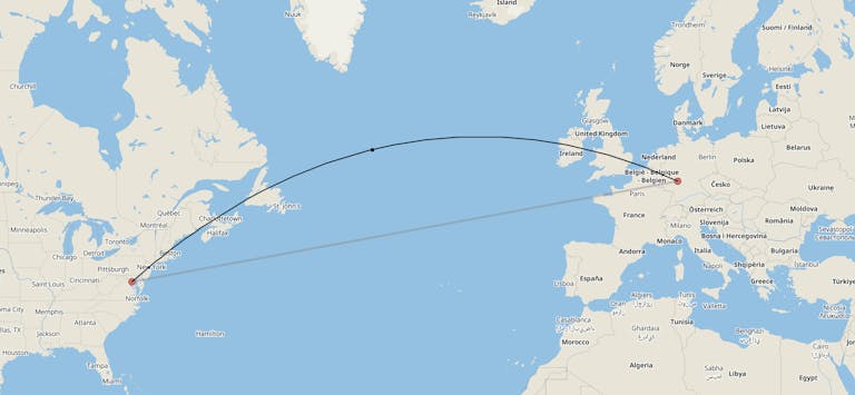 - User request: Berlin → Frankfurt (POP) → Washington, D.C. (~6,550 km)