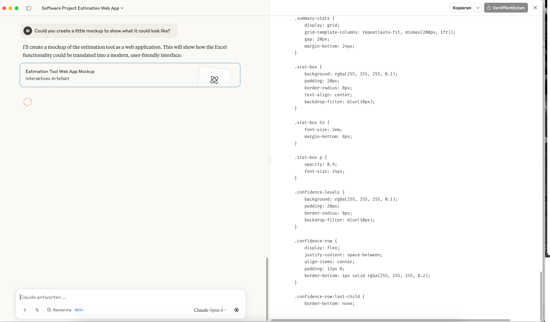 In our example, we use Antropic Claude, as we have had good experiences with it. Antropic's models (Opus and Sonnett) are well known in the AI dev community as very good coding models. In addition, the results can be published directly via Claude Artifacts and thus shared.
